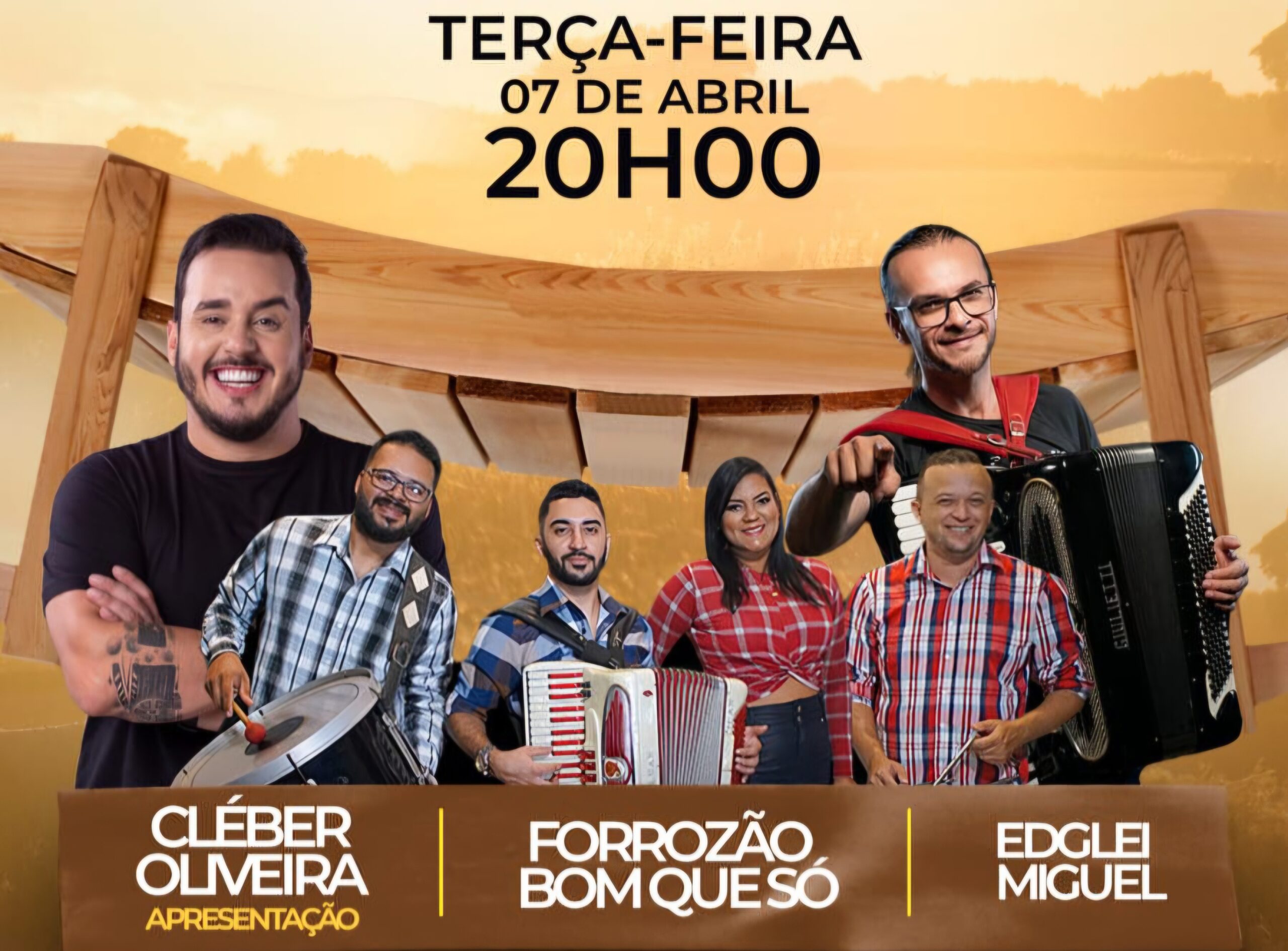 Sob a vibrante apresentação do comunicador Cléber Oliveira, o público poderá curtir muito forró pé-de-serra com o cantor e sanfoneiro Edglei Miguel e o grupo Forrozão Bom Que Só.